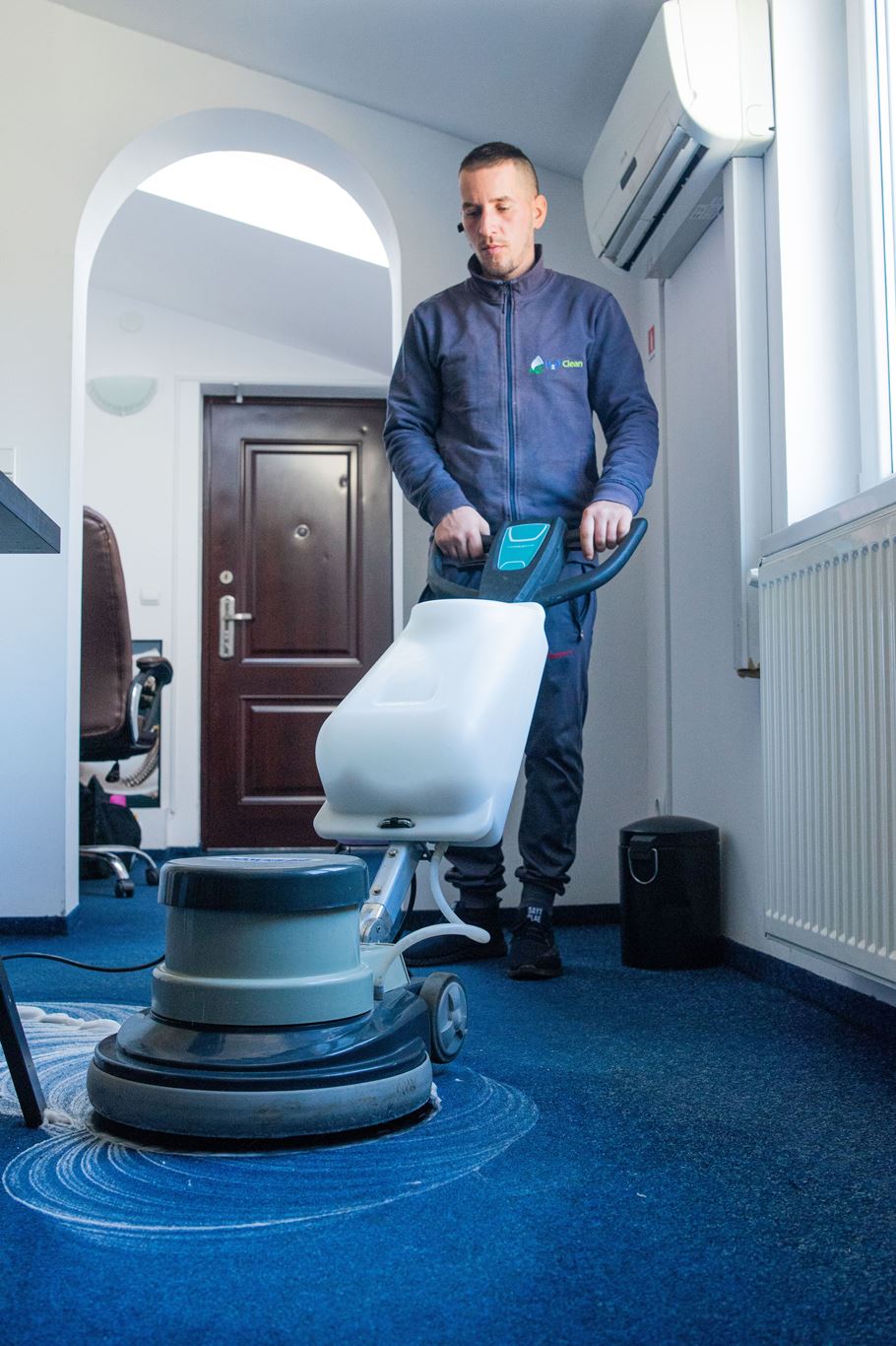 Procesul este mecanizat și se realizează cu monodisc și prin tehnica de injecție-extracție. Echipamentele performante pe care le folosim sunt produse de la branduri de top, cum ar fi Karcher, Taski și Nilfisk, astfel că ai certitudinea unui rezultat desăvârșit, în cel mai scurt timp posibil. Este important să știi că pentru acest tip de spălat mochete și curățare în profunzime, folosim apă și detergent activ, adică un duo imbatabil în fata murdăriei persistente. În cazul în care sub mochetă există pardoseală din lemn natural sau parchet, vom folosi spumă uscată. Această soluție este foarte eficientă atât pentru îndepărtarea murdăriei, cât și pentru protejarea pardoselii. Pentru îndepărtarea gumelor uscate și lipite de mochetă folosim spray special care le îngheață pentru a se desprinde mai ușor. Petele de cafea, sucuri, etc le scoatem aproape în totalitate cu ajutorul unui spray special anti pată. Prin metoda de injecție-extracție folosită în timpul procesului de curățare mochetă, apa va fi eliminată aproape în totalitate, astfel că mocheta se va usca rapid. Prin comparație, dacă speli mocheta fără o aparatură profesională, apa poate stagna în țesătură, ceea ce duce la apariția mirosului neplăcut, la creșterea gradului de umezeală și chiar la formarea mucegaiului în timp.